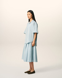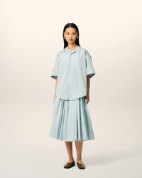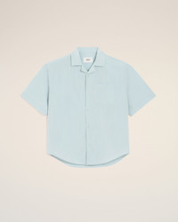 Short sleeves shirt in taffetas. Unisex product Boxy fit Short sleeves Open collar Chest patch pocket Buttoned front tab Mother of pearl buttons "ami alexandre mattiussi" woven label inserted in the left side seam 77 cm center back length (size XS) 79 cm center back length (size M) Made in Portugal (with love) REF: USH774.PL0036.4506 SIZE & FIT This style is unisex. For man, take your normal size. For woman, take one size down than your usual size. Man model is 186 cm / 6"1 and is wearing a size M. Woman model is 181 cm / 5"11 and is wearing a size XS. COMPOSITION & CARE GUIDE Main Material : 100% Polyester Chlorine prohibited Do not tumble dry Cool iron Machine wash at 30°c gentle Dry clean petroleum solvent only on a gentle process