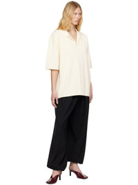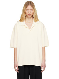 Knit viscose-blend polo. · Rib-knit spread collar, hem, and cuffs · Open placket · Dropped shoulders Supplier color: White cream 75% viscose, 25% polyamide. Made in Portugal 251482F108003