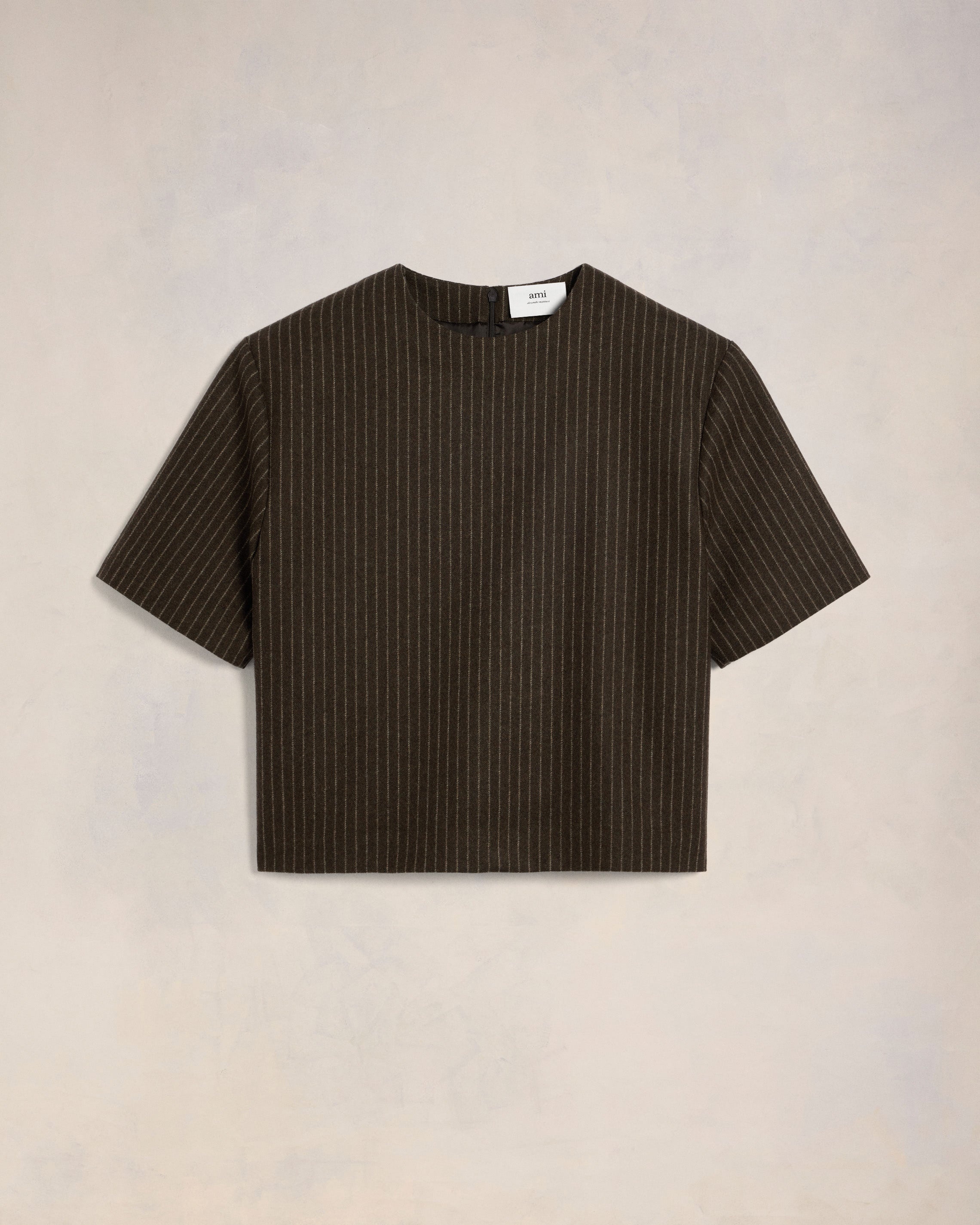 Short sleeve top in striped wool flannel. Boxy fit 68 cm center back length (size 36) Invisible zipper on the back Made in Bulgaria (with love) REF : UTP116.WV0048.2007 SIZE & FIT This style is unisex. For man, take your normal size. For woman, take one size down than your usual size. Man model is 1m87 / 6'2" and is wearing a size M. Woman model is 1m79 / 5'10" and is wearing a size XS. COMPOSITION & CARE GUIDE 100% New Wool Do not wash Chlorine prohibited Do not tumble dry Cool iron Dry clean petroleum solvent only on a gentle process
