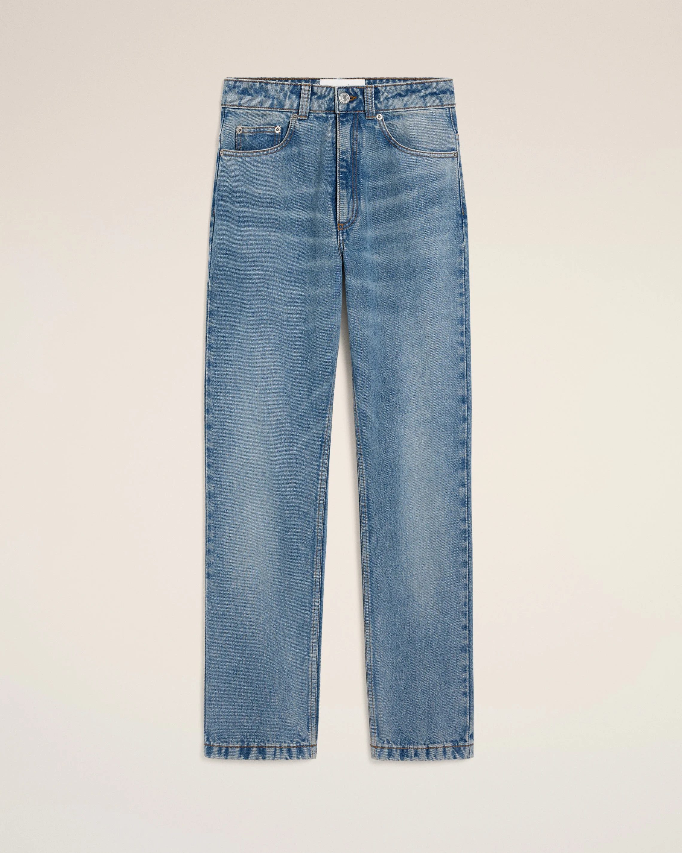 Classic fit jeans in used indigo denim. Classic fit Classic waist Fitted leg Zipped fly 5 pockets Denim metal rivets and buttons in nickel color "ami alexandre mattiussi" patch on the back Tobacco topstitches 19 cm bottom leg width (size 26) Made in Portugal (with love) REF: FTR031.DE0046.480 SIZE & FIT Fits true to size. Take your normal size. Model is 181 cm / 5"11 and is wearing a size 26. COMPOSITION & CARE GUIDE Main Material : 100% Cotton Pocket Lining : 65% Polyester 35% Cotton Machine wash at 30°c Chlorine prohibited Do not tumble dry Medium iron Dry clean possible Wash inside out