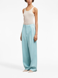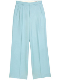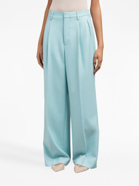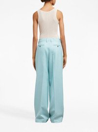 high-waisted pleated wool trousers Highlights - Baby blue - Virgin wool - Box-pleat design - Belt loops - Slip pockets to the sides - Two rear welt pockets - Wide leg - Extra-long length - Concealed rear hook and zip fastening Imported Composition Virgin Wool 100%