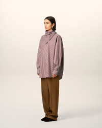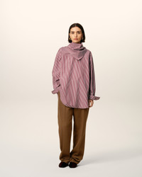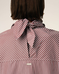 Long sleeves bandana blouse in striped cotton poplin. Unisex product Oversized fit Bandana collar Buttoned cuffs Mother of pearl buttons Horizontal Ami De Coeur silver plate under back gusset Center back length 87,2 (size XS) Center back length 90,2 (size M) Made in Bulgaria (with love) REF: UTP801.CO0133.693 SIZE & FIT This style is unisex and it's design to be worn oversize. Take your normal size. Man model is 187 cm / 6"2 and is wearing a size M. Woman model is 178 cm / 5"10 and is wearing a size XS. COMPOSITION & CARE GUIDE Main Material : 100% Cotton Chlorine prohibited Do not tumble dry Cool iron Machine wash at 30°c gentle Dry clean gentle