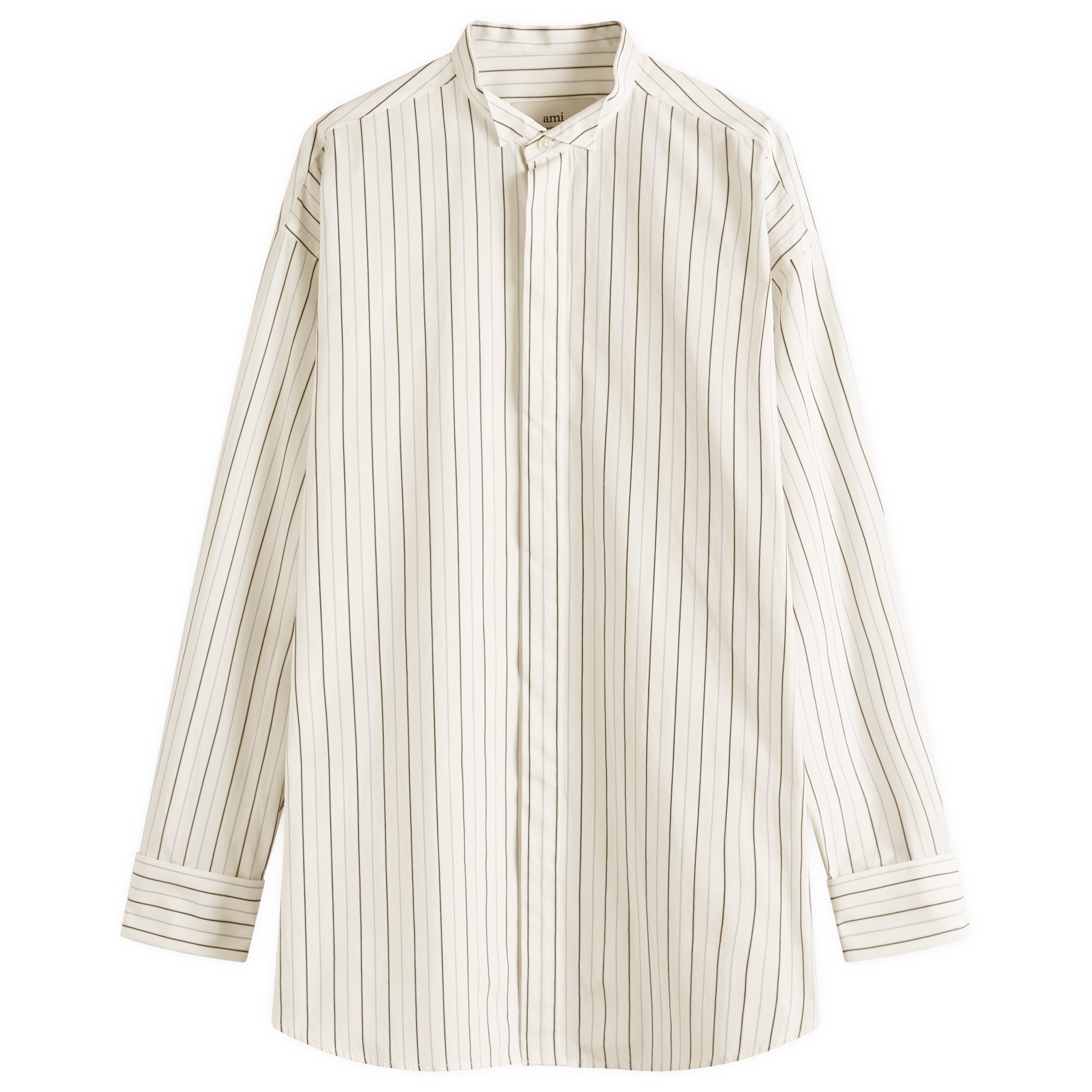 Perfect for strolling through the city, this AMI Paris Shirt is defined by an oversized cut. Flowing into a dress-like shape, this cotton poplin piece is adorned with a double stripe print. - 100% Cotton - Wingtip Collar - Button Closure - Buttoned Cuffs