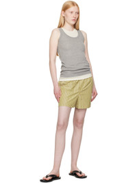 Cotton poplin shorts. Pinstripes throughout. · Elasticized waistband · Three-pocket styling · Mock fly · Vented cuffs · Logo patch at back pocket Supplier color: Lichen/White/Curry 100% cotton. Made in Portugal 251482F088000