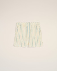 Short in fancy stripes cotton poplin. Unisex product Casual fit Striped Elastic waist Zipper opening Side pockets Back patch pocket with woven label "ami alexandre mattiussi" on the side. Side slits 35,5 cm bottom leg width (size XS) 36,5 cm bottom leg width (size M) Made in Portugal (with love) REF: USO806.CO0134.1872 SIZE & FIT This style is unisex. For man, take your normal size. For woman, take one size down than your usual size. Model is 186 cm / 6"1 and is wearing a size M. Model is 177 cm / 5"9 and is wearing a size XS. COMPOSITION & CARE GUIDE Main Material : 100% Cotton Machine wash at 30°c gentle Chlorine prohibited Do not tumble dry Dry clean gentle Cool iron