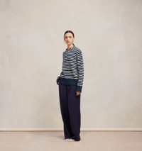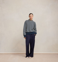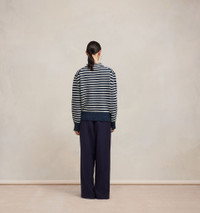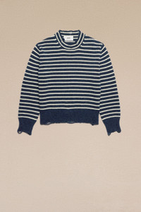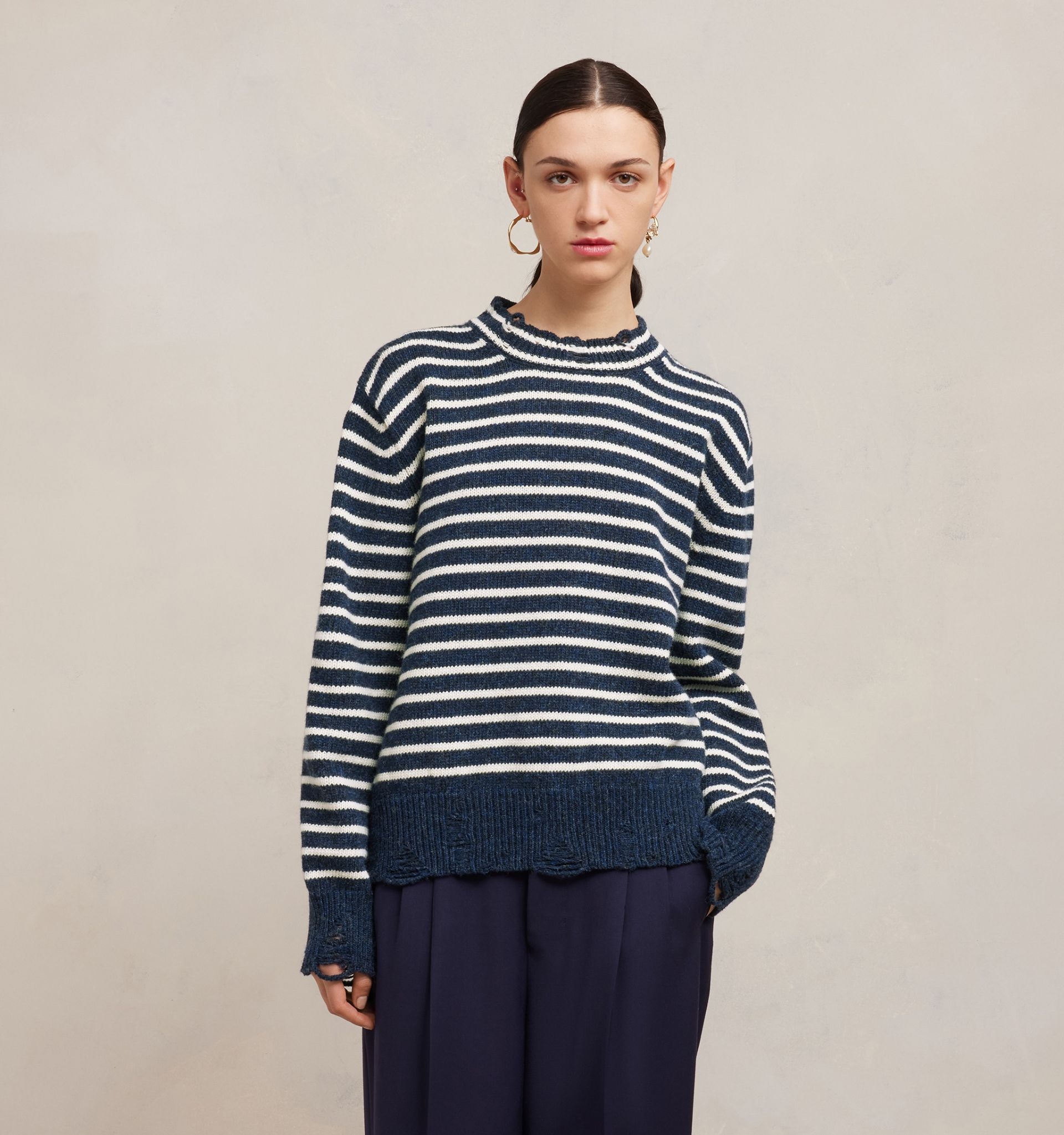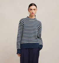 Product Description striped ribbed crew neck jumper from AMI Paris featuring navy blue, white, wool, chunky knit, horizontal stripe pattern, crew neck, drop shoulder, ripped detailing and ribbed cuffs and hem. When buying this unisex item, keep in mind that it is graded in standard men's sizing.. Sweater in striped shetland wool. - Classic fit - Jersey stitch - Cut out details at cuffs and bottom rib - 64 cm center back length (size M) - 60 cm center back length (size XS) - Made in Portugal (with love) REF UKS027.KN0017477 Size & Fit This style is unisex. For man, take your normal size. For woman, take one size down than your usual size. Man model is 1m86 / 6'1" and is wearing a size M. Woman model is 1m79 / 5'9" and is wearing a size XS. Materials & Care Instructions 100% Wool Hand wash low temperature Chlorine prohibited Do not tumble dry Dry flat Cool iron Dry clean gentle Find out more about product traceability.