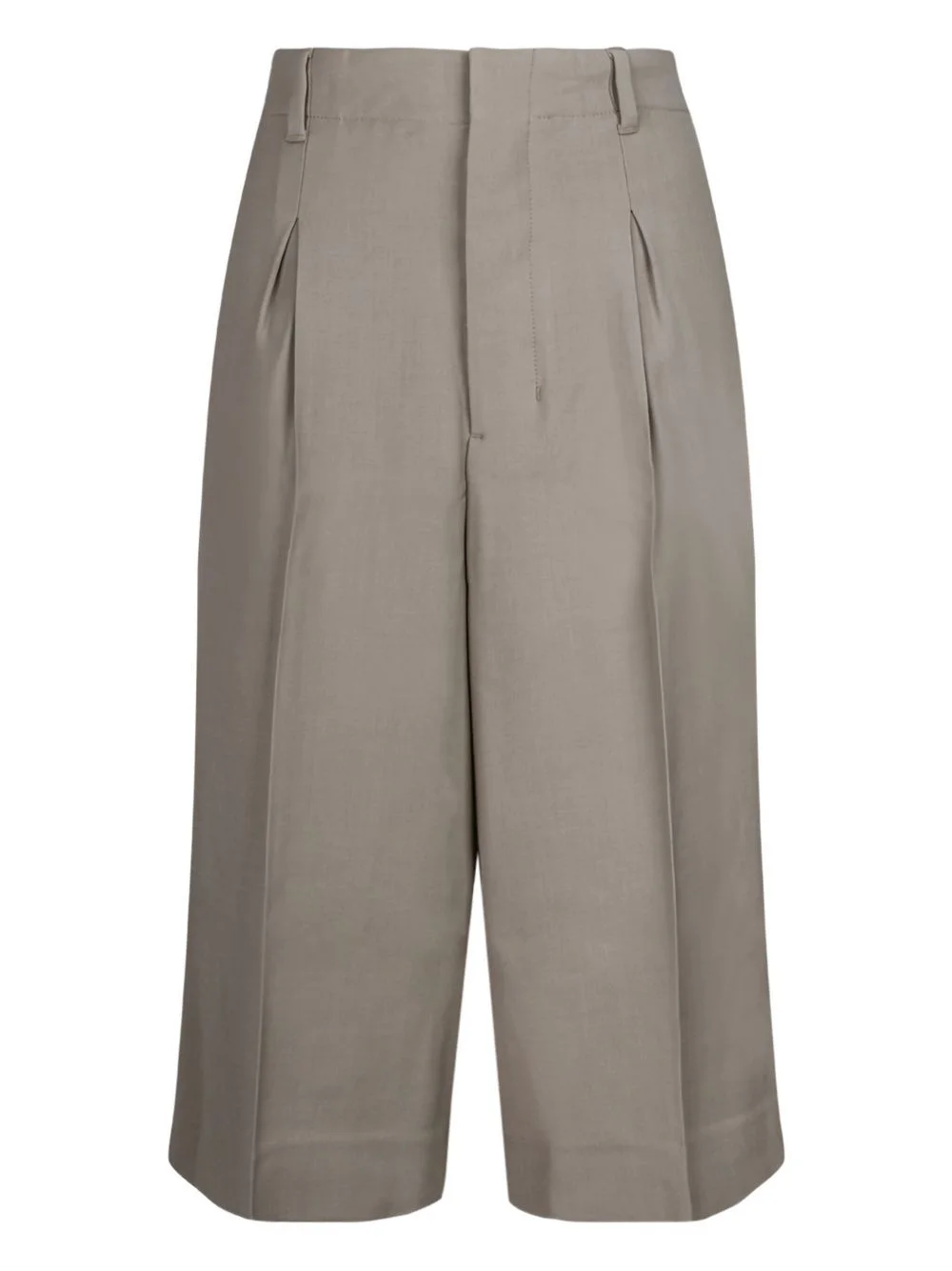 tailored shorts Highlights - Taupe brown - Twill weave - Belt loops - Inverted pleat - Pressed crease - Two side slit pockets - Two rear flap pockets - Knee-length - Concealed front button, hook and zip fastening Imported Composition Outer: Viscose 55%, Virgin Wool 45% Lining: Polyester 65%, Cotton 35% SIZE & FIT Measurement INSIDE LEG 13.77 in(35 cm) FRONT RISE 14.17 in(36 cm) WAIST 26.77 in(68 cm) HIPS 37.79 in(96 cm)