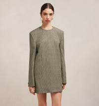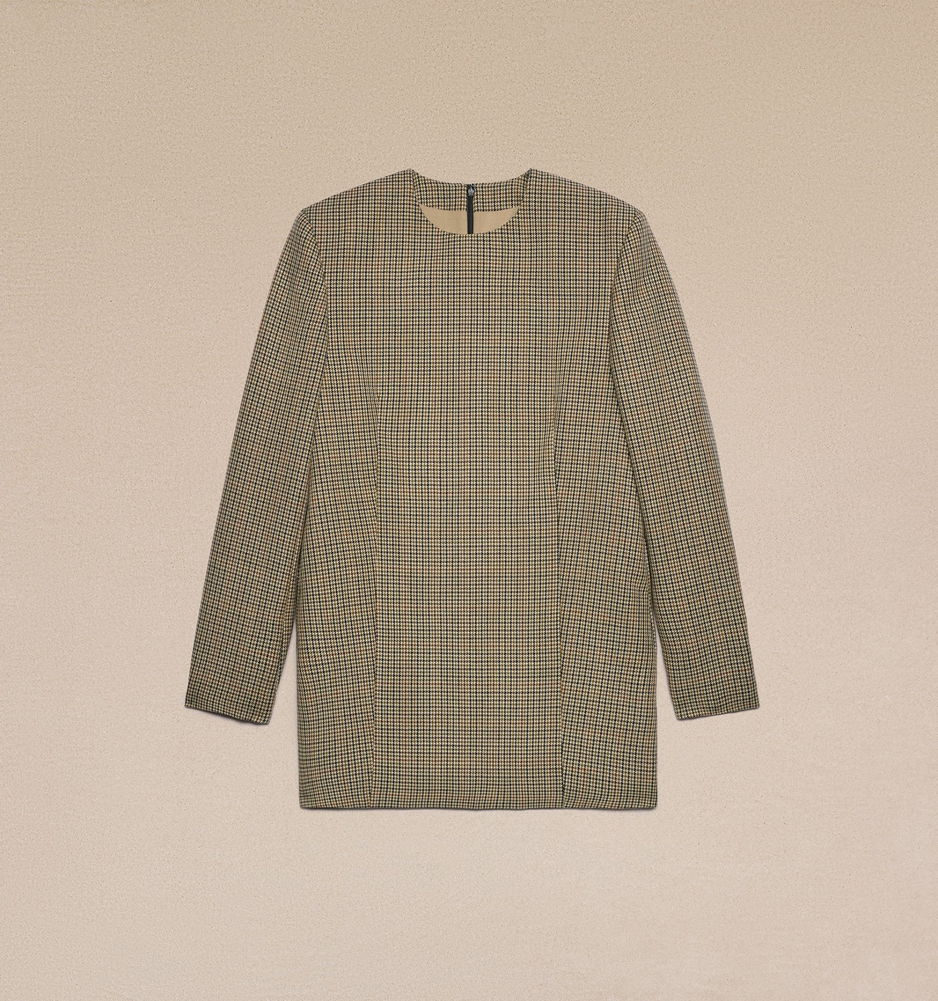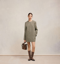 Product Description check-print long-sleeve minidress from AMI Paris featuring beige, wool, check print, crew neck, long sleeves, two side slit pockets, thigh-length, concealed rear zip fastening and straight hem. Tailoring short dress in houndstooth wool. - Tailoring construction - 82cm center back length (size 36) - Fully lined - Buttoned cuffs - Made in Romania (with love) REF FDR109.WV0032270 Size & Fit Fits true to size. Take your normal size. Model is 1m79 / 5'9" and is wearing a size 36. Materials & Care Instructions 100% New Wool Chlorine prohibited Do not tumble dry Dry clean gentle Cool iron Do not wash Find out more about product traceability.