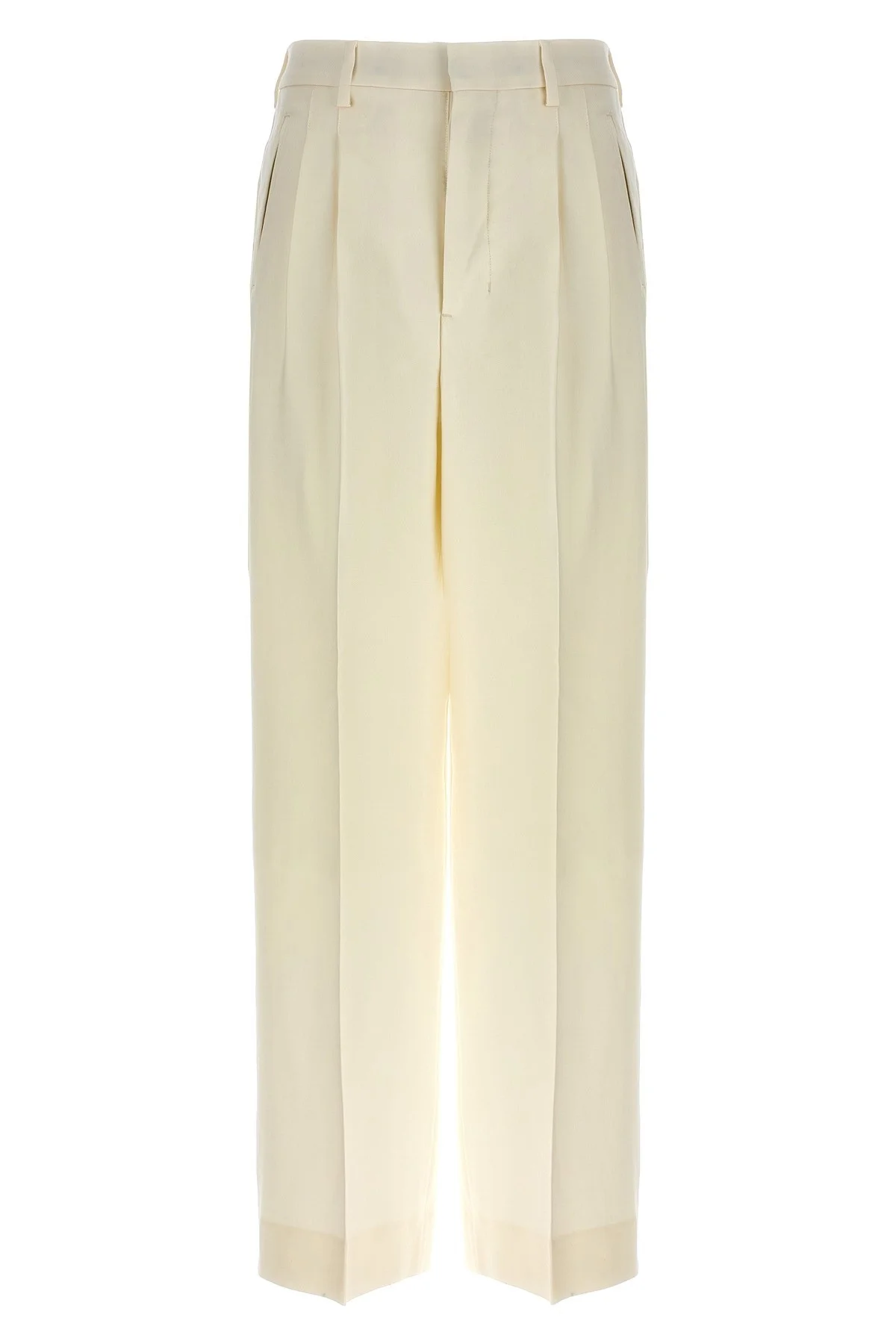 cod. FTR508WV0026185 Wool pants with pleats, button and hook closure, pockets. Color: White Size & Fit: true to size fit French size Composition: 100% virgin wool Made in: Romania