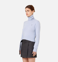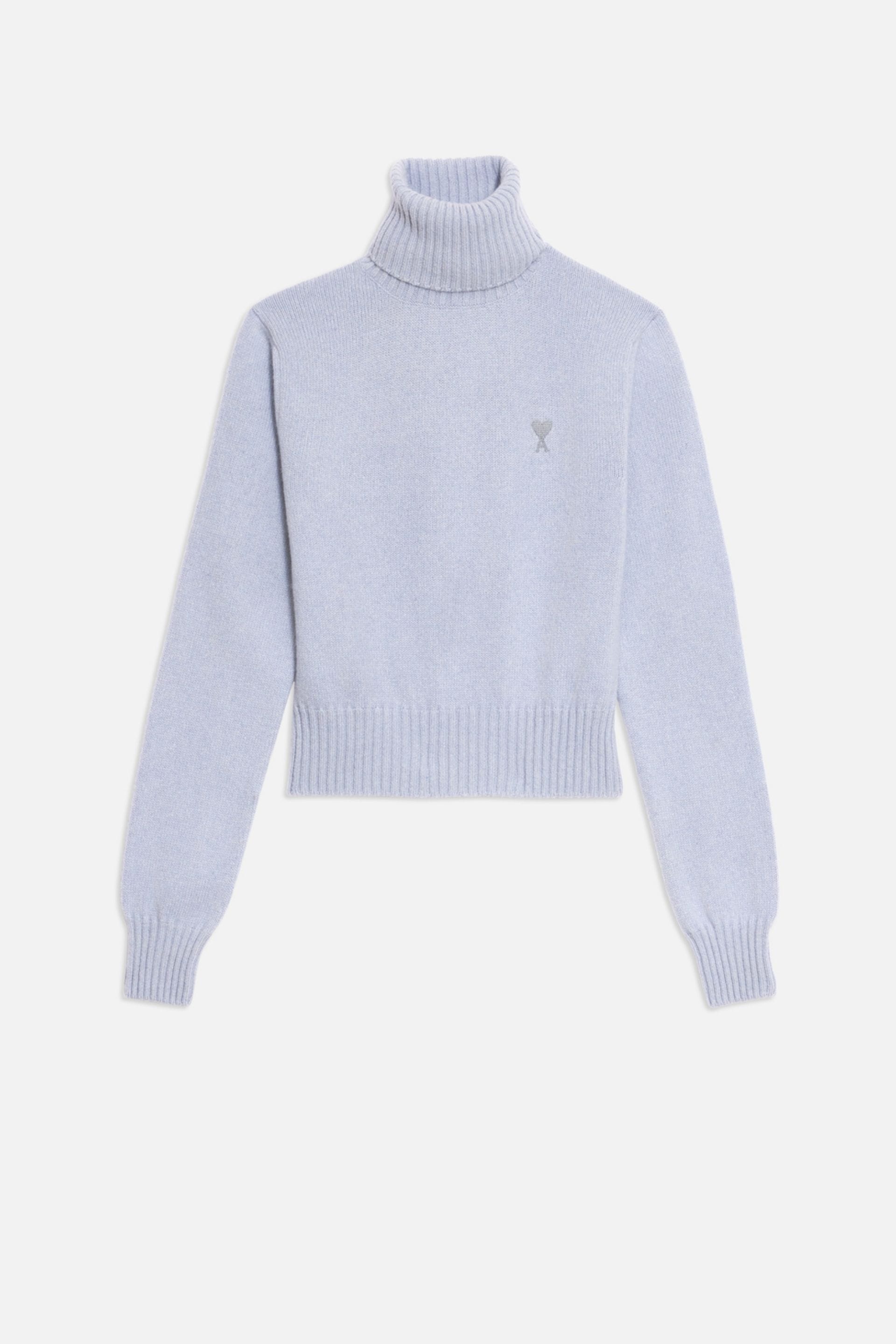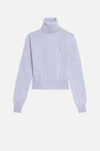 Product Description Pale blue cashmere Ami de Coeur cashmere jumper from AMI Paris featuring signature Ami de Coeur monogram motif, embroidered logo at the chest, high neck, long sleeves and ribbed edge. Sweater in recycled cashmere. - Turtleneck - Jersey stitch - Tonal Ami de Coeur chest embroidery - 48cm middle back length (size S) REF FKS407.005437 Size & Fit Fits true to size. Take your normal size. Materials & Care Instructions Hand wash low temperature, Do not bleach, Do not tumble dry, Dry flat, Cool iron, Dry clean possible