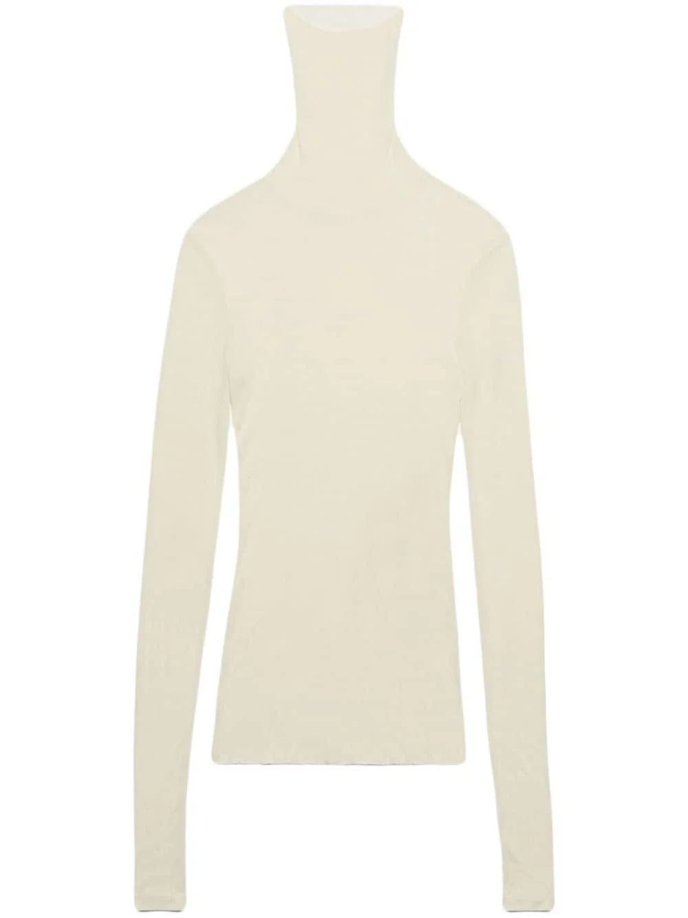 roll-neck ribbed sweater Highlights - Off-white - Ribbed knit - Roll neck - Long sleeves - Straight hem Imported Composition Viscose 82%, Polyamide 18%