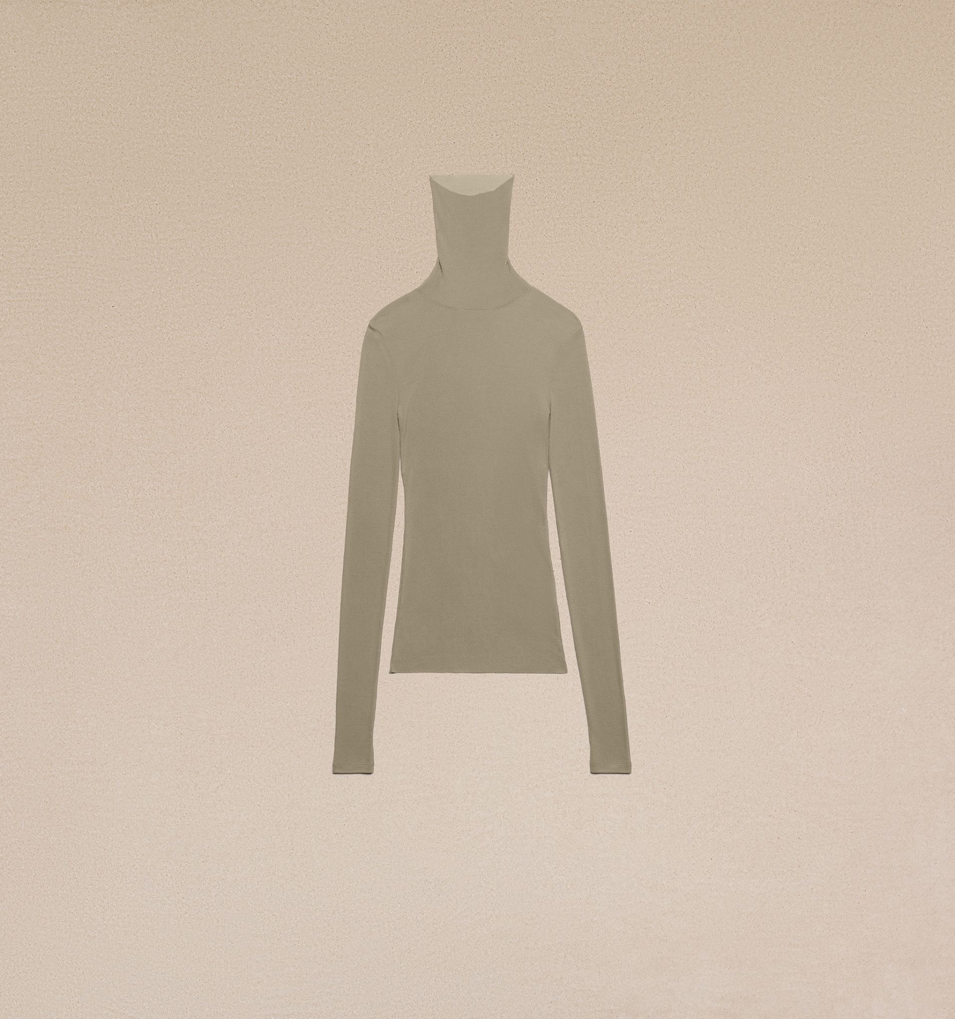 Product Description high-neck ribbed-knit jumper from AMI Paris featuring taupe brown, ribbed knit, high neck, fitted waistline, extra-long sleeves and straight hem. Turtleneck t-shirt in light ribbed jersey. - Adjusted fit - 70 cm center back length (size S) - Turtleneck - Long sleeves - Made in Portugal (with love) REF FTS301.JE0022263 Size & Fit Fits true to size. Take your normal size. Model is 1m79 / 5'9" and is wearing a size XS. Materials & Care Instructions 82% Viscose, 18% Polyamide Hand wash low temperature Chlorine prohibited Do not tumble dry Dry clean gentle Cool iron Find out more about product traceability.