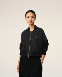 Bomber jacket in technical twill in nylon and cotton. 54 cm center back length (size S) Water repellent fabric Fully lined Padded Nickel double metal zipper with "ami" engraved pullers Welt pockets with invisible snap buttons Ribbed collar, waist and cuffs "ami alexandre mattiussi" metal lettering signature on the chest pocket Made in Romania (with love) REF: FJK012.PA0007.001 SIZE & FIT Fits true to size. Take your normal size. Model is 1m81 / 5'11" and is wearing a size XS. COMPOSITION & CARE GUIDE 70% Polyamide, 30% Cotton Do not wash Chlorine prohibited Do not tumble dry Cool iron Dry clean petroleum solvent only on a gentle process