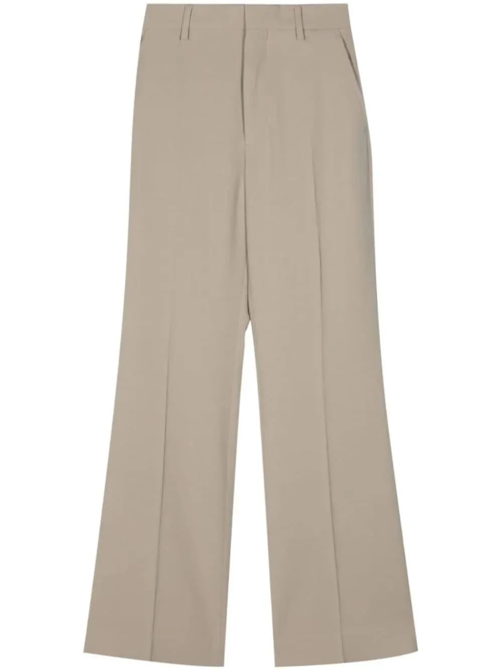 flared twill trousers Highlights - Taupe grey - Twill weave - Pressed crease - Dart detailing - Belt loops - Mid-rise - Straight leg - Two side inset pockets - Two rear button-fastening pockets - Concealed front button, hook and zip fastening - Unlined Imported Composition Outer: Viscose 55%, Virgin Wool 45% Lining: Polyester 100%