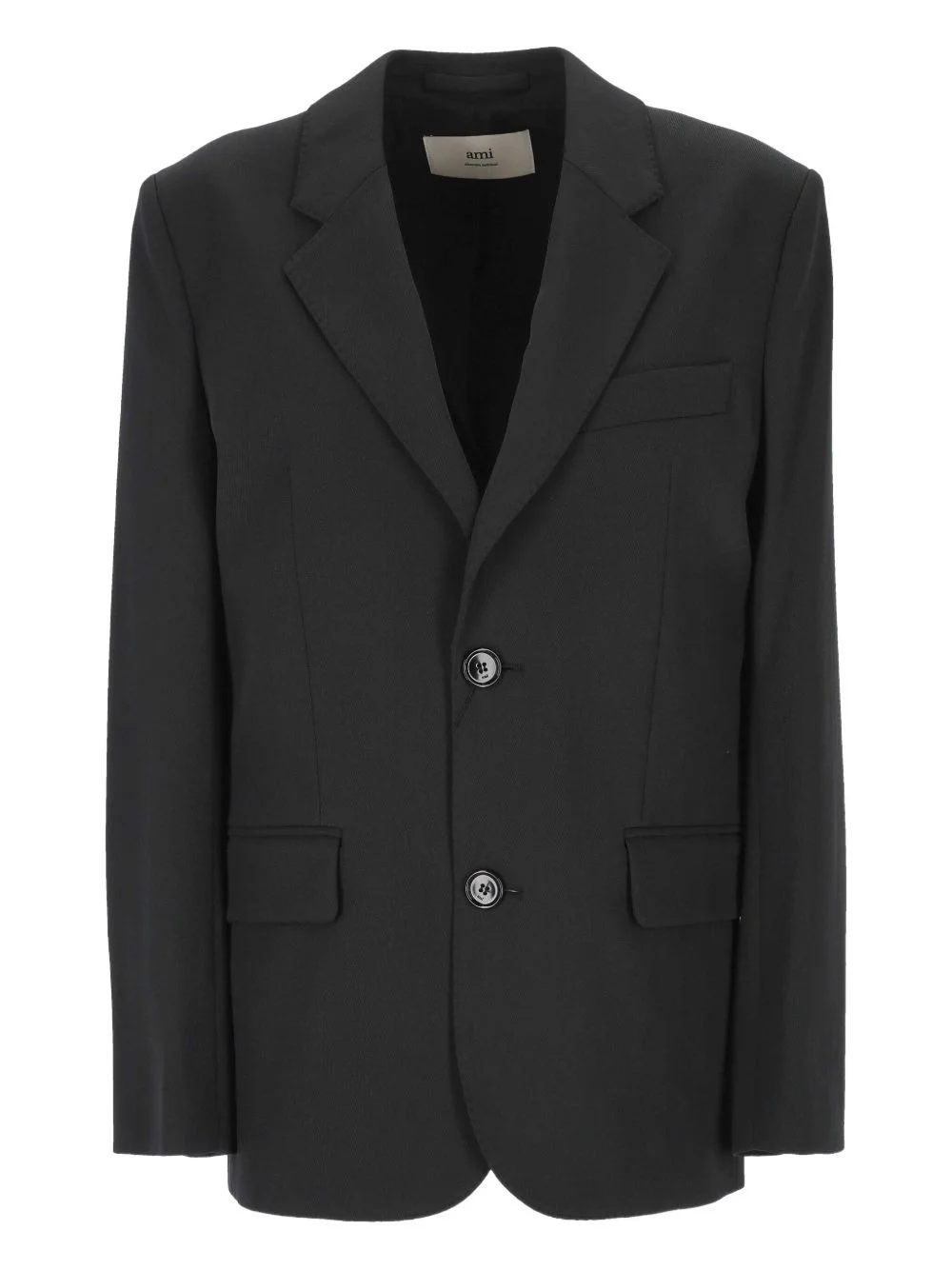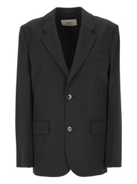 two-button padded-shoulder blazer Highlights - Black - Padded shoulders - Two-button fastening - Notched lapel - Welt pockets - Straight hem Imported Composition Virgin Wool 100% Washing instructions Read Manufacturer Guidelines
