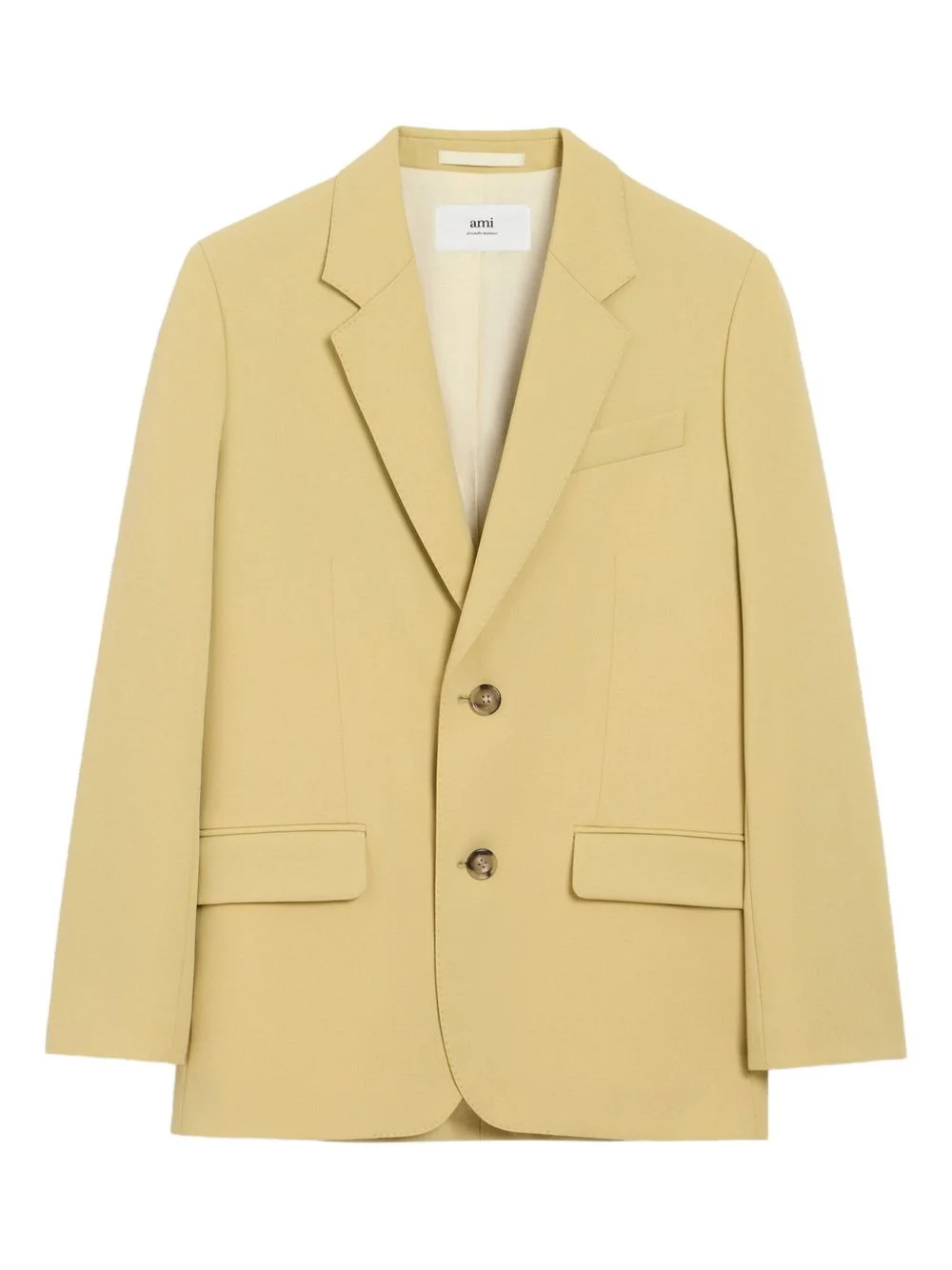 single-breasted wool jacket Highlights - Lime green - Wool tricotine - Notch collar - Horn buttons - Double piped pockets - Back slits Imported Composition Outer: Wool 100% Lining: Cotton 50%, Polyester 50%