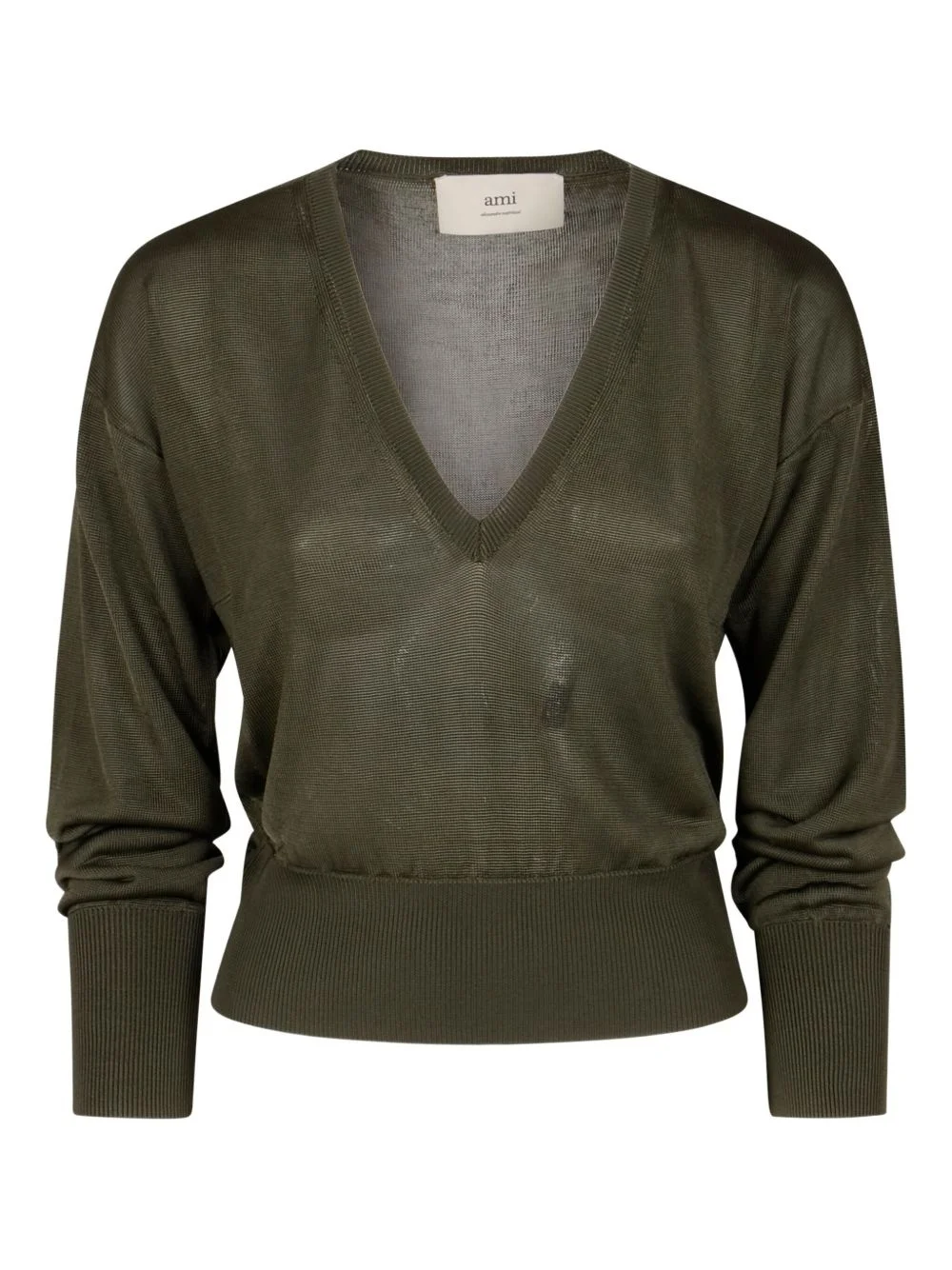 V-neck jumper Highlights - Olive green - V-neckline - Long sleeves - Ribbed cuffs Imported Composition Viscose 100% Washing instructions Hand Wash