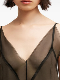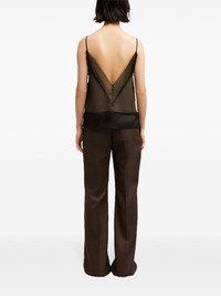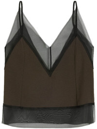 V-neck semi-sheer top Highlights - Coffee brown - Semi-sheer construction - V-neck - V-back - Sleeveless - Straight hem Imported Composition Acetate 73%, Viscose 27%