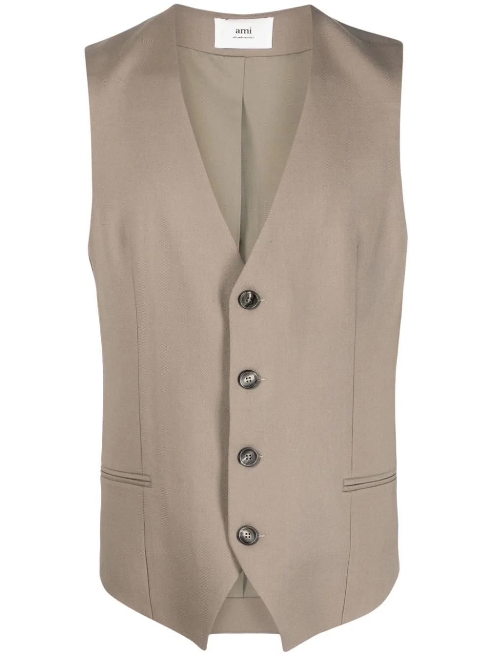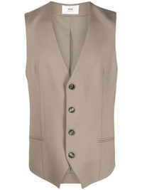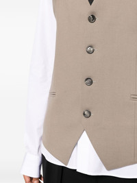 V-neck virgin wool waistcoat Highlights - Taupe - Virgin wool - V-neck - Collarless - Front button fastening - Sleeveless - Two front jetted pockets - Straight hem Imported Composition Lining: Cotton 50%, Polyester 50% Outer: Virgin Wool 100% SIZE & FIT Model measurements Height 5 ft 10 in(1.78 m) Bust/Chest 32.67 in(83 cm) Hips 35.43 in(90 cm) Waist 23.22 in(59 cm) FittingInformation Designed for a slim fit that sits just away from the body offering a close yet comfortable fit Made from a midweight non-stretch fabric This piece fits true to size – take your usual size Washing instructions Dry Clean Only