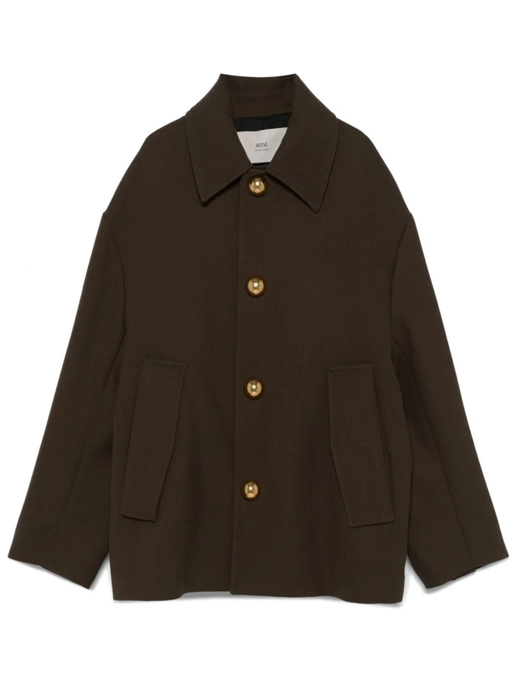 virgin-wool jacket Highlights - Coffee brown - Virgin wool - Front press-stud fastening - Classic collar - Long sleeves - Press-stud fastening cuffs - Two front welt pockets - Internal slip pocket - Full lining - Straight hem Imported Composition Outer: Virgin Wool 100% Lining: Cotton 50%, Polyester 50% SIZE & FIT Model measurements Height 5 ft 10 in(1.78 m) Bust/Chest 33.85 in(86 cm) Hips 36.61 in(93 cm) Waist 26.77 in(68 cm) FittingInformation Designed to be unstructured, offering a loose fit throughout Made from a midweight non-stretch fabric