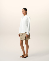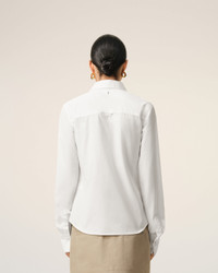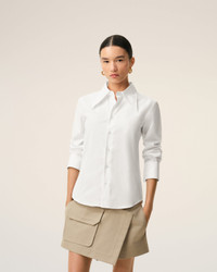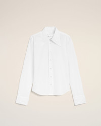 Fitted shirt with sharp collar in cotton poplin. Fitted fit Sharp collar Ami de coeur plate on the middle back Mother-of-pearl buttons on front placket Cufflinks on cuffs Made in Bulgaria (with love) REF: FSH817.CO0063.100 SIZE & FIT This item is designed for a close fit. Take your normal size. Woman model is 175 cm / 5"7 and is wearing a size 36. COMPOSITION & CARE GUIDE Main Material : 100% Cotton Chlorine Prohibited Do Not Tumble Dry Dry Clean Gentle Machine Wash At 30°C Gentle Cool Iron