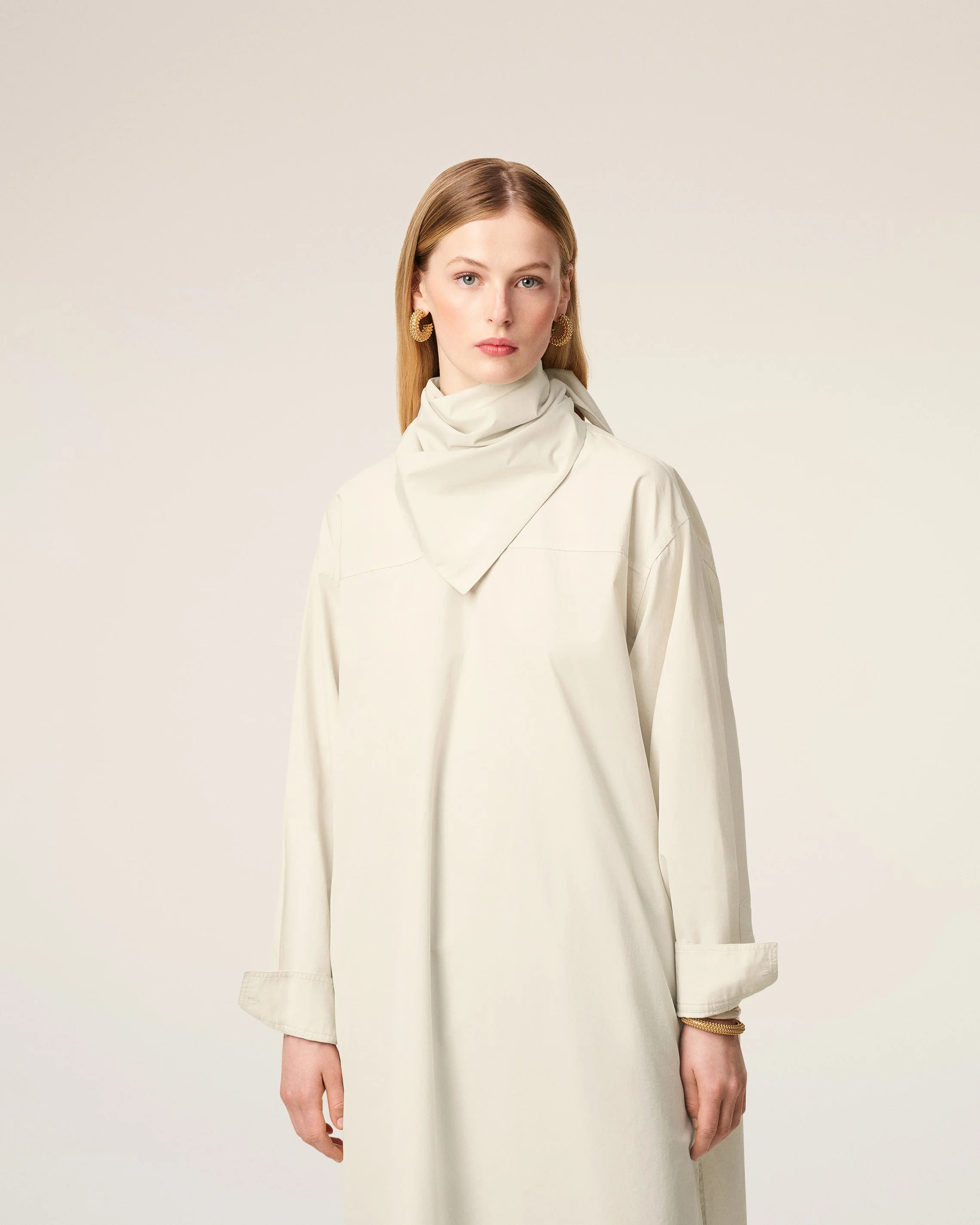 Midi dress in cotton poplin with sewn on bandana collar. Unisexe product Oversized fit Bandana collar Buttoned cuffs Mother of pearl buttons Horizontal silver plated Ami De Coeur under back gusset 118.5cm mid back length (size XS) Made in Bulgaria (with love) REF: UDR629.CO0063.185 SIZE & FIT This style is unisex and it's design to be worn oversize. Take your normal size. Man model is 185 cm / 6"1 and is wearing a size M. Woman model is 177 cm / 5"9 and is wearing a size XS. COMPOSITION & CARE GUIDE Main Material : 100% Cotton Chlorine prohibited Do not tumble dry Cool iron Machine wash at 30°c gentle Dry clean gentle