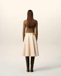 Midi skirt in off white cotton twill. Low rise Zipped fly Denim metal rivets and buttons in nickel color "ami alexandre mattiussi" patch on the back Contrasted topstitches 65 cm middle back length (size 36) Made in Portugal (with love) REF: FSK436.DE0106.150 SIZE & FIT Fits true to size. Take your normal size. Model is 179 cm / 5"10 and is wearing a size 26. COMPOSITION & CARE GUIDE Main Material : 100% Cotton Pocket Lining : 65% Polyester 35% Cotton Machine wash at 30°c Chlorine prohibited Do not tumble dry Medium iron Dry clean possible Wash inside out Wash with similar colours