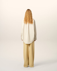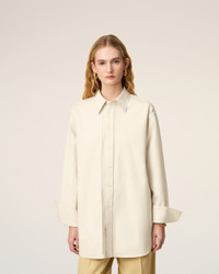Long sleeves shirt with raw edged fabric applications in cotton poplin. Unisex product Oversized fit Classic collar Hidden button placket at the front Buttoned cuffs Mother of pearl buttons Woven label applied to satin raw edge patch at the center back yoke Raw edge finishes Center back length: 90 cm (size M) Made in Madagascar (with love) REF: USH779.CO0063.185 SIZE & FIT This style is unisex and it's design to be worn oversize. Take your normal size. Man model is 187 cm / 6"2 and is wearing a size M. Woman model is 179 cm / 5"10 and is wearing a size XS. COMPOSITION & CARE GUIDE Main Material : 100% Cotton Collar : 100% Vinyl Polychloride Machine wash at 30°c gentle Chlorine prohibited Do not tumble dry Cool iron Dry clean gentle
