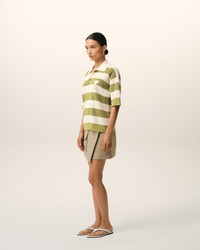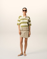 Polo in ajoure stripped cotton knit. Shirt collar Short sleeves Ajoure stitch Ami galalithe buttons Ami de Coeur crochet patch Made in Italy (with love) REF: FPL430.KN0153.A041 SIZE & FIT Fits true to size. Take your normal size. Woman model is 175 cm / 5"7 and is wearing a size S. COMPOSITION & CARE GUIDE Main Material : 100% Cotton Hand Wash Low Temperature Chlorine Prohibited Do Not Tumble Dry Dry Flat Dry Clean Possible Contains Non-Textile Parts Of Animal Origin