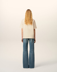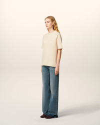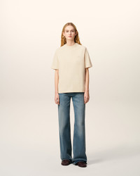 T-shirt in cotton jersey . Unisex product Relaxed fit Raglan sleeves Tonal italic "ami" chest embroidery Tonal "ami" embroidery under back neckline Flatlock finish below RIB on collar and raglans 64cm center back length (size XS) 68cm center back length (size M) Made in Bulgaria (with love) REF: UTS334.JE0172.185 SIZE & FIT This style is unisex. For man, take your normal size. For woman, take one size down than your usual size. Man model is 183 cm / 6"0 and is wearing a size M. Woman model is 179 cm / 5"10 and is wearing a size XS. COMPOSITION & CARE GUIDE Main Material : 100% Cotton Chlorine prohibited Machine wash at 30°c gentle Do not tumble dry Dry clean gentle Medium iron Line dry in shade