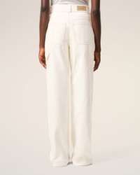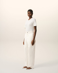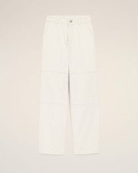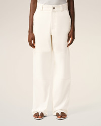 Workwear trousers in compact cotton canvas. Loose fit Regular waist Large leg Workwear details Zipped fly Denim metal buttons in nickel color at belt "ami alexandre mattiussi" paper jacron on the back Contrasted topstitches Made in Romania (with love) REF: FTR864.CO0211.136 SIZE & FIT This item is designed to be worn lose. Take your normal size. Woman model is 178 cm / 5"9 and is wearing a size S. COMPOSITION & CARE GUIDE Main Material : 100% Cotton Pocket Lining : 65% Polyester, 35% Cotton Chlorine Prohibited Do Not Tumble Dry Dry Clean Gentle Cool Iron Do Not Wash