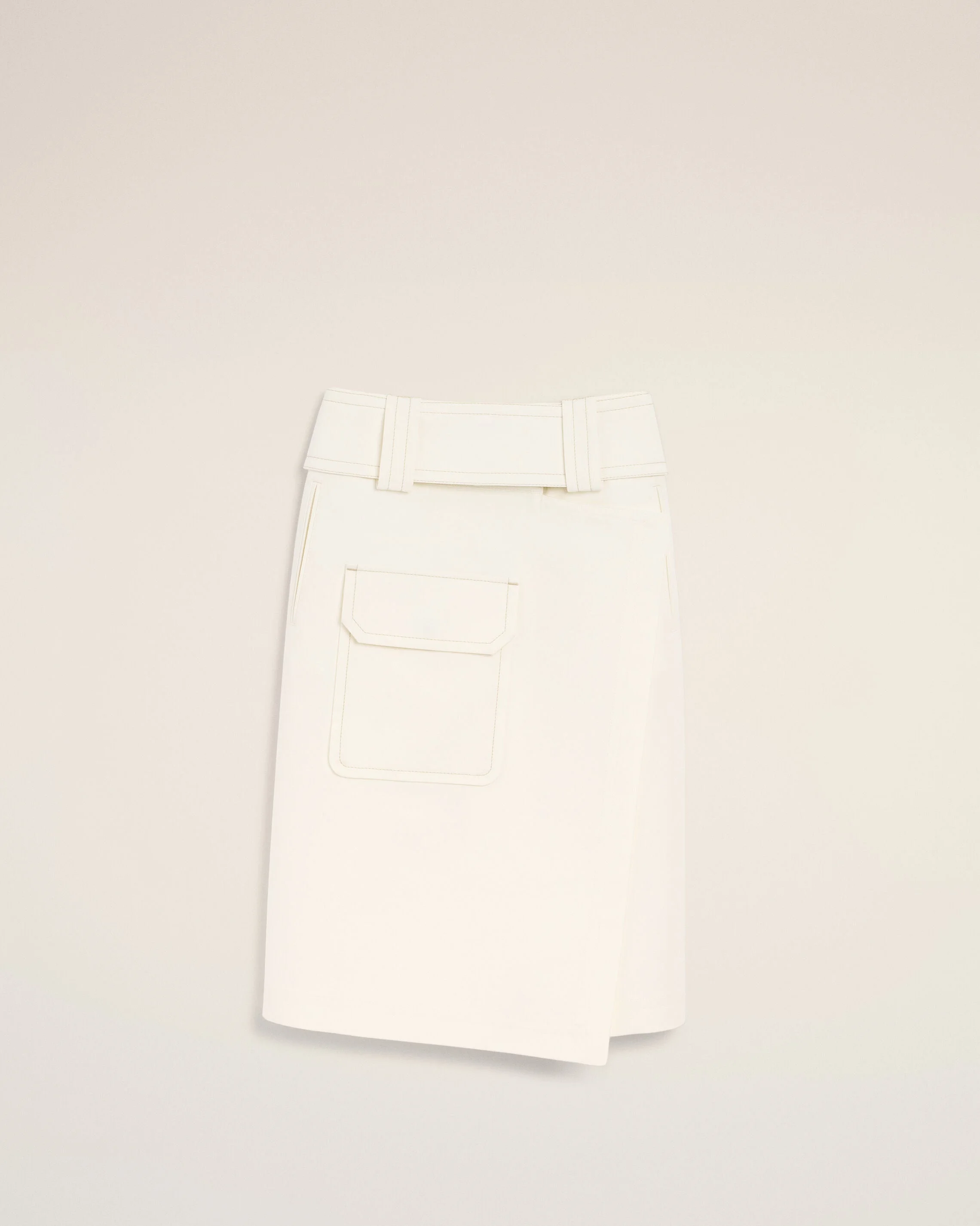 Wrap skirt in double faced cotton gabardine. Regular waist Wrapped opening, belt with hook-and-eye and intern button Welted pockets Flap pocket on the front with invisible snap button Ami de Coeur plate on the back ami paris heritage label on the inside Contrasted topstitches Water repellent fabric Made in Portugal (with love) REF: FSK460.CO0212.136 SIZE & FIT Fits true to size. Take your normal size. Woman model is 180 cm / 5"9 and is wearing a size S. COMPOSITION & CARE GUIDE Main Material : 100% Cotton Pocket Lining : 65% Polyester, 35% Cotton Machine Wash At 30°C Gentle Chlorine Prohibited Do Not Tumble Dry Cool Iron Dry Clean Possible