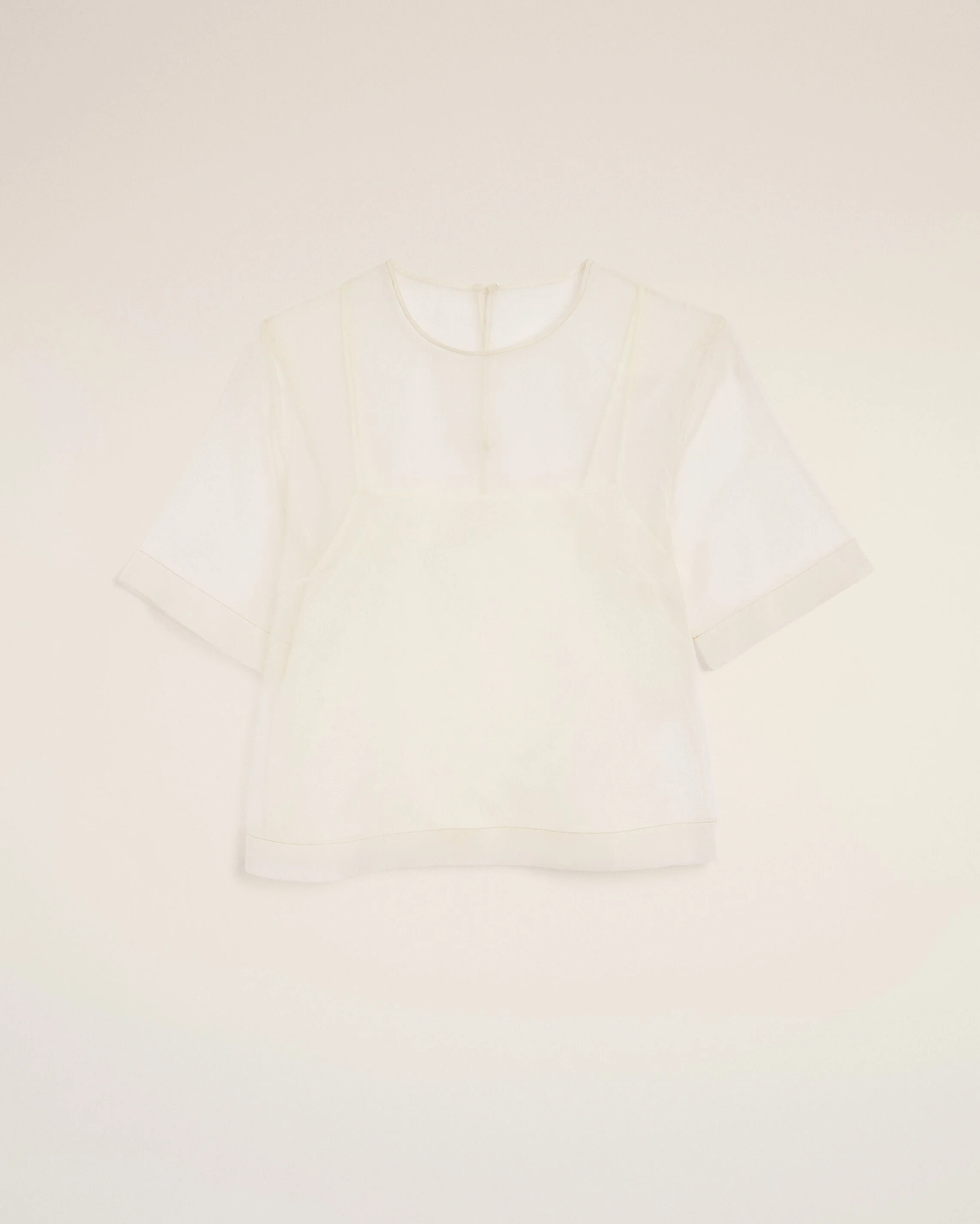 WHITE SILK SHORT SLEEVES SHEER WITH UNDERTOP TOP