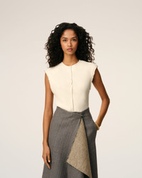 WHITE SLEEVELESS RAW EDGE DETAILS TOP