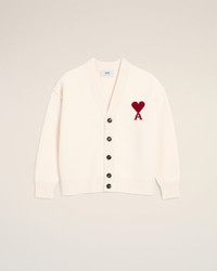 Cardigan in felted merino wool knit. Unisex product "ami" engraved horn buttons Intarsia knitted Ami de Coeur on the chest Inside out seams Jersey stitch 64 cm center back length (size M) 58 cm center back length (size XS) Made in Portugal (with love) REF: UKC367.018.154 SIZE & FIT This style is unisex. For man, take your normal size. For woman, take one size down than your usual size. Man model is 186 cm / 6"1 and is wearing a size M. Woman model is 178 cm / 5"10 and is wearing a size XS. COMPOSITION & CARE GUIDE Main Material : 100% Wool Hand wash low temperature Chlorine prohibited Do not tumble dry Dry flat Cool iron Dry clean possible Contains non-textile parts of animal origin