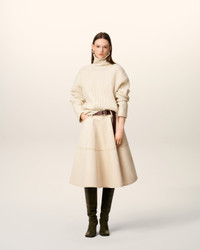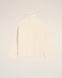 WHITE WOOL FUNNEL NECK SWEATER
