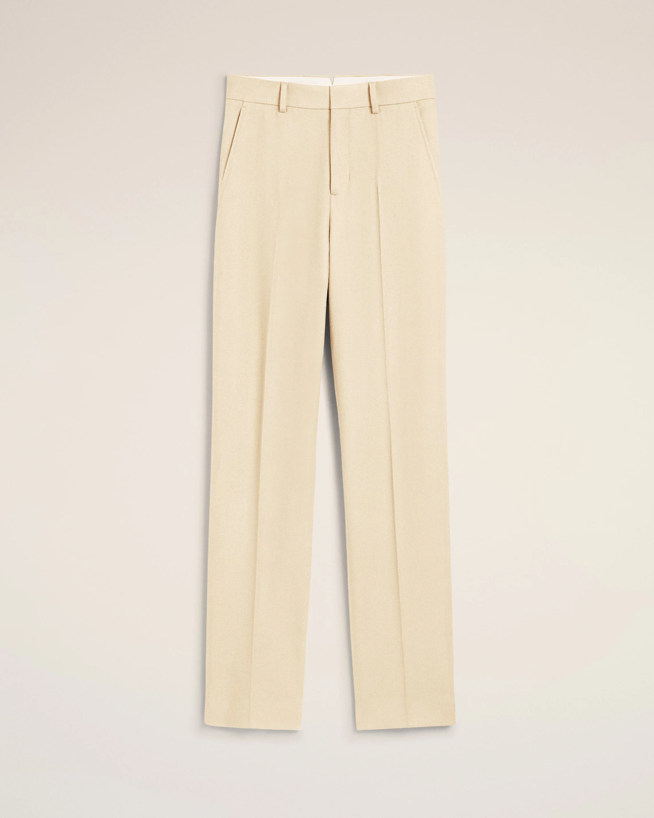 Wide fit trousers in wool flannel. Wide fit Zipped front fly Horn buttons Side pockets Back welt pockets with buttons "ami" waistband V cut detail on the back belt Front lining to knees Front pleats 27 cm bottom leg width (size 36) Made in Portugal (with love) REF: FTR423.WV0058.185 SIZE & FIT This item is designed to be worn lose. Take your normal size. Model is 177 cm / 5"9 and is wearing a size 36. COMPOSITION & CARE GUIDE Main Material : 100% New Wool Main Material : 100% New Wool Pocket Lining : 100% Cotton Do not wash Chlorine prohibited Do not tumble dry Cool iron Dry clean petroleum solvent only on a gentle process