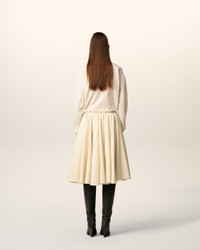 Midi skirt in wool flannel. Straight fit Invisible zip at back Side pockets Low hem with clean edge finishing 63cm center back length (size 36) Made in Madagascar (with love) REF: FSK444.WV0058.185 SIZE & FIT Fits true to size. Take your normal size. Model is 179 cm / 5"10 and is wearing a size 36. COMPOSITION & CARE GUIDE Main Material : 100% New Wool Main Lining : 60% Acetate 40% Cupro Do not wash Chlorine prohibited Do not tumble dry Cool iron Dry clean gentle