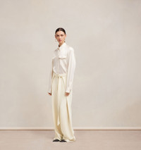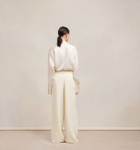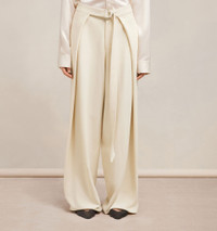 Product Description layered wide-leg belted trousers from AMI Paris featuring almond beige, layered design, belted waist, two side inset pockets, wide leg, concealed front fastening and long length. Wide fit trousers with floating panels in wool and viscose twill. - Wide fit - 31 cm bottom leg width (size 36) - Front lining to knees - Panels to tie at the waist - Zipped fly - ami logo rocap waistband - Made in Bulgaria (with love) REF FTR407.VI0007185 Size & Fit Fits true to size. Take your normal size. Model is 1m79 / 5'9" and is wearing a size 36. Materials & Care Instructions 55% Viscose, 45% New Wool Chlorine prohibited Do not tumble dry Dry clean gentle Cool iron Do not wash Find out more about product traceability.