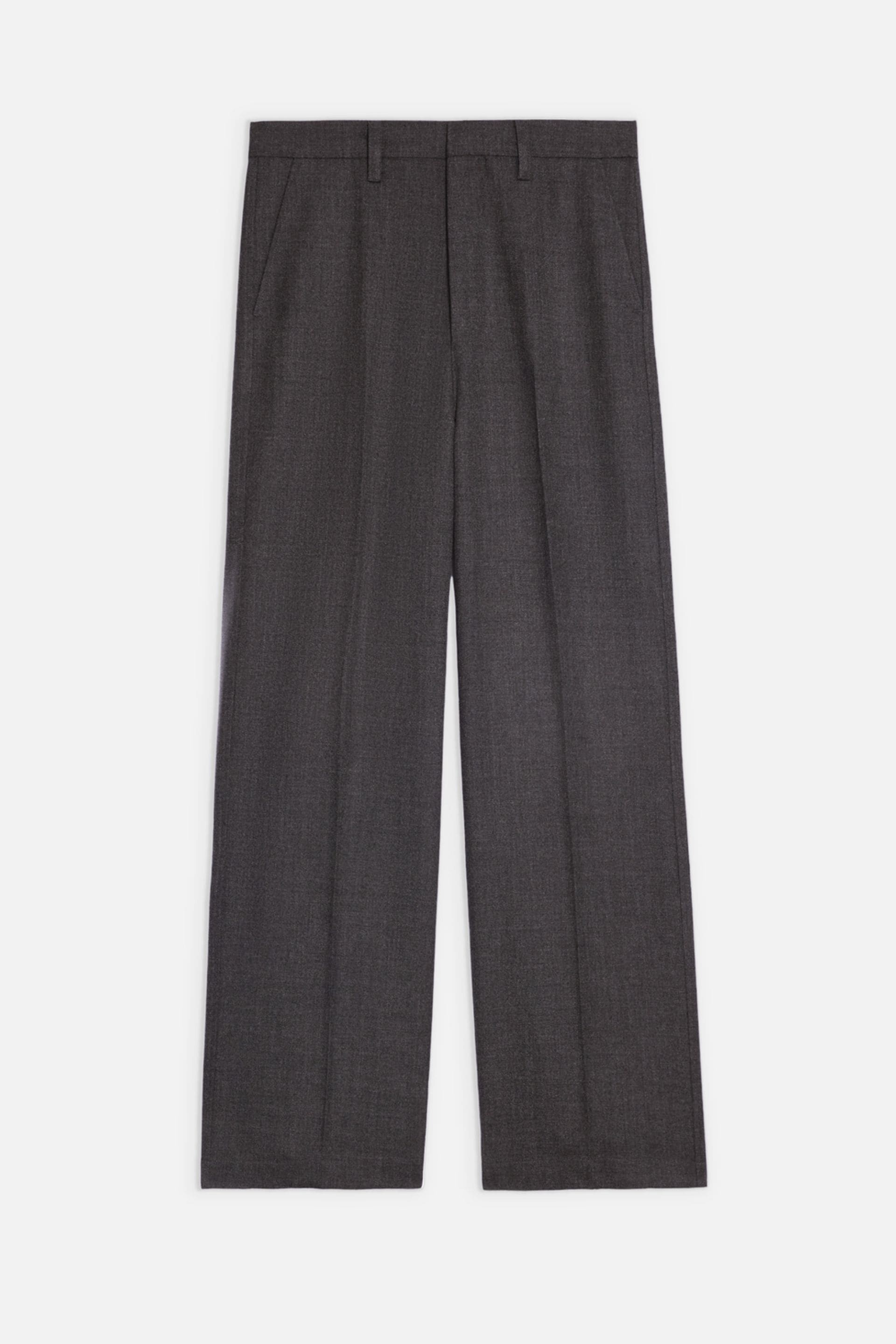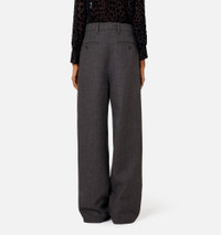 Product Description Grey wool wide-leg tailored trousers from AMI Paris featuring wide leg, high waist, belt loops, concealed front fastening, pressed crease, two diagonal pockets to the sides and two rear welt pockets. When buying this unisex item, keep in mind that it is graded in standard men's sizing..