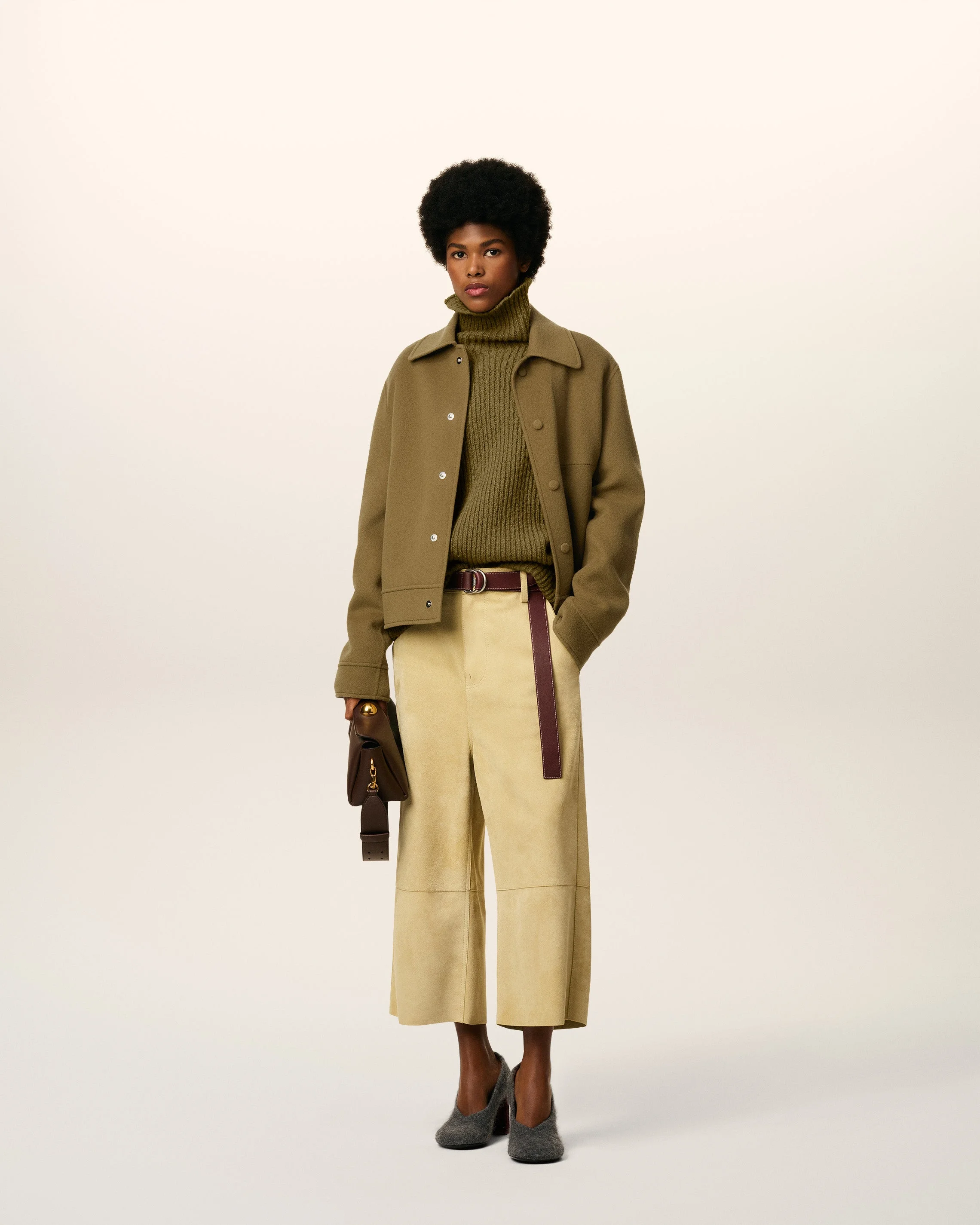 Buttoned jacket in double face cashmere. 1 inside chest patch pocket 2 diagonal welt pockets Fabric covered snap buttons Unlined Embossed Ami de Coeur on middle back 63 cm center back length (size S) Made in China (with love) REF: FJK845.WV0022.298 SIZE & FIT Fits true to size. Take your normal size. Model is 175 cm / 5"8 and is wearing a size S. COMPOSITION & CARE GUIDE Main Material : 90% Wool 10% Cashmere Main Material : 90% Wool 10% Cashmere Pocket Lining : 65% Polyester 35% Cotton Do not wash Chlorine prohibited Do not tumble dry Cool iron Dry clean gentle