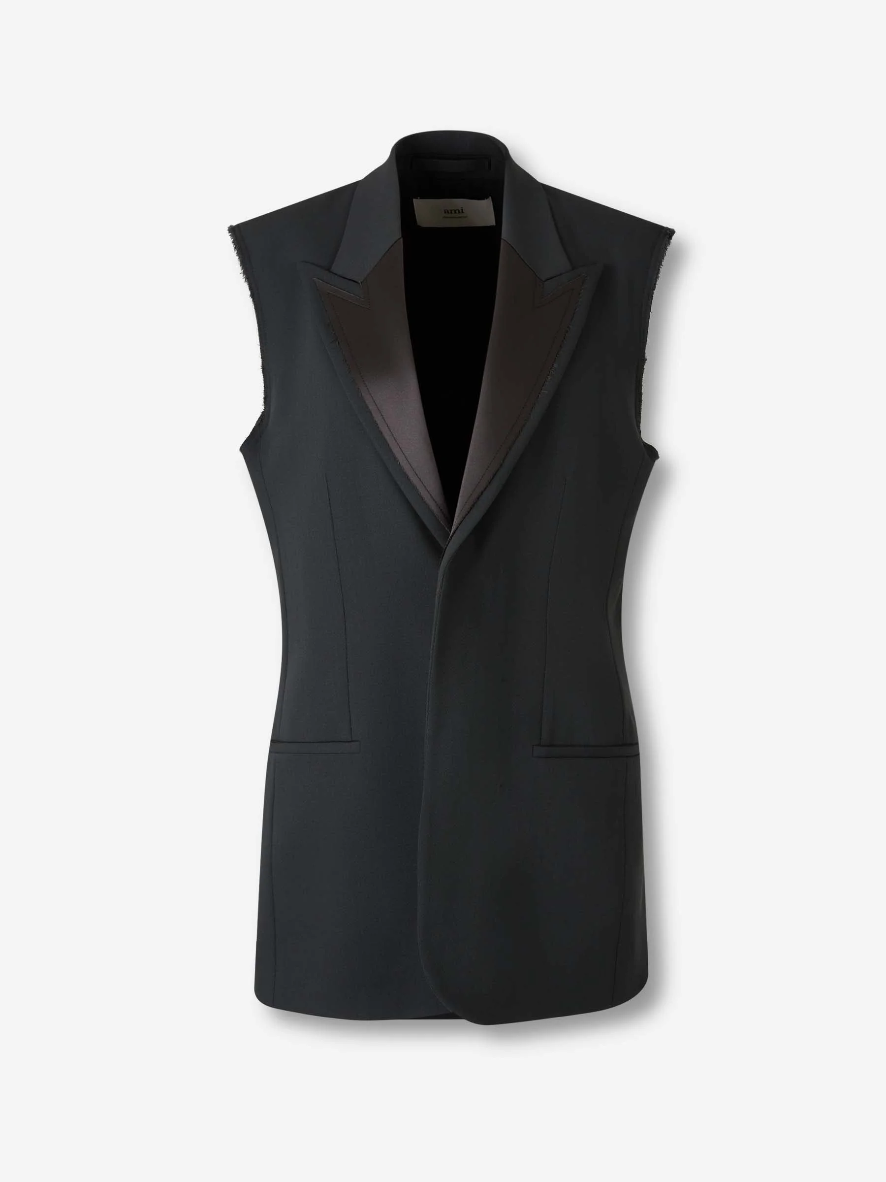SKU: 775-000230 01 BRAND ID: H25FBV003.WV0067 Wool Dress Vest Dress vest By Ami Paris • Side pockets with piping • Lined interior and armholes cut to the bone • Straight cut • Made in virgin wool fabric • Dress vest • Straight closure with hidden buttons 100% virgin wool Portugal