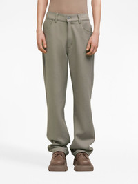 wool straight-leg trousers Highlights - Medium grey - Wool - Mid-rise - Belt loops - Front button and zip fastening - Two rounded pockets to the sides - Two rear patch pockets - Straight leg - When buying this unisex item, keep in mind that it is graded in standard men's sizing. Imported Composition Wool 100% Washing instructions Do Not Wash/Do Not Dry Clean