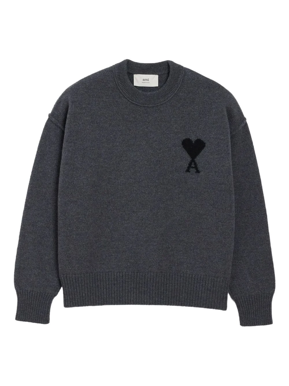 Ami De Coeur crew-neck wool sweater Highlights - Anthracite grey - Crew neck - Long sleeves - Ribbed cuffs and hem - Intarsia-knit logo Imported Composition Fabric 100% Washing instructions Read Manufacturer Guidelines