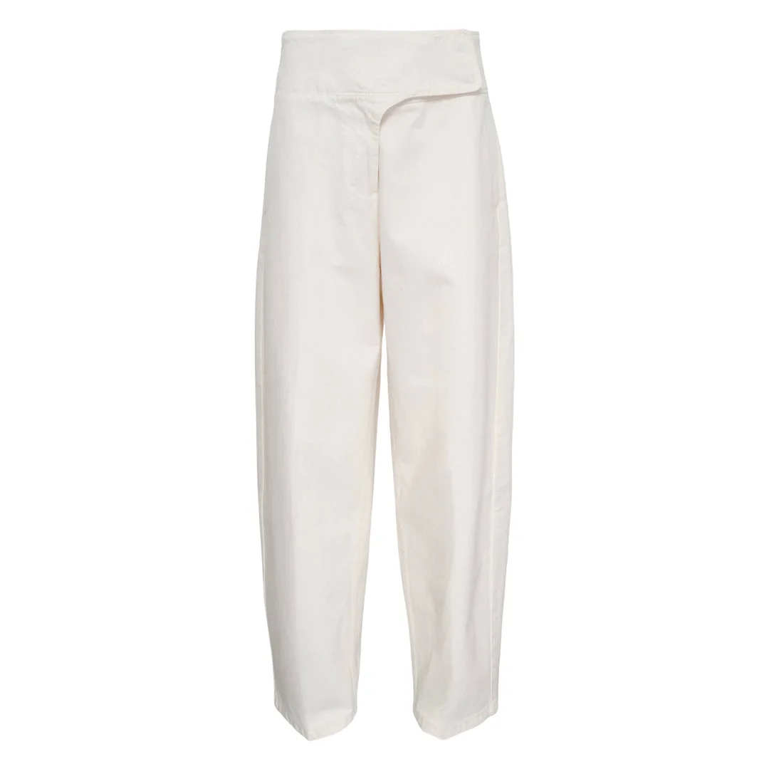600079422WHT025 / FTR872.DE0126/00/136 - Wrap-style belt closure at waist - High-rise balloon fit silhouette - Premium cotton denim construction - Wide leg opening - Front and back patch pockets - Relaxed through hip and thigh The AMI Wrapped Belted Balloon Fit Jean delivers contemporary denim styling with relaxed, oversized proportions. Crafted from premium cotton denim in clean ivory white, featuring a unique wrap-style belt closure that creates a distinctive silhouette. The balloon fit construction offers comfort and movement while maintaining the brand's signature Parisian streetwear aesthetic.