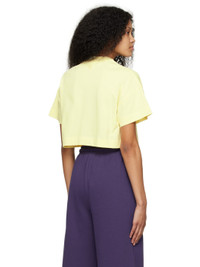GOTS-certified organic cotton jersey T-shirt. · Rib knit crewneck · Text embroidered at front · Cropped hem · Logo embroidered at back collar Available exclusively at SSENSE. Supplier color: Pale yellow 100% organic cotton. Made in Portugal 231482F110040