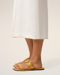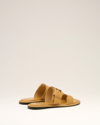 Buckle sandals in smooth nappa leather. Smooth nappa leather upper Smooth leather lining Shiny smooth leather insole Leather sole with anti slip insert Flat shoes Contrasted off white topstitches Signature buckle Paris Paris in vibrated brass Woven "ami alexandre mattiussi" label on the insole Made in Portugal (with love) REF: FSV833.AL0181.A086 SIZE & FIT Fits true to size. Take your normal size. COMPOSITION & CARE GUIDE Upper : 100% Cow Leather Main Lining : 100% Cow Leather Outsole : 80% Cow Leather, 20% Rubber Do Not Wash