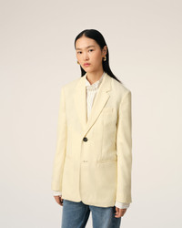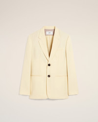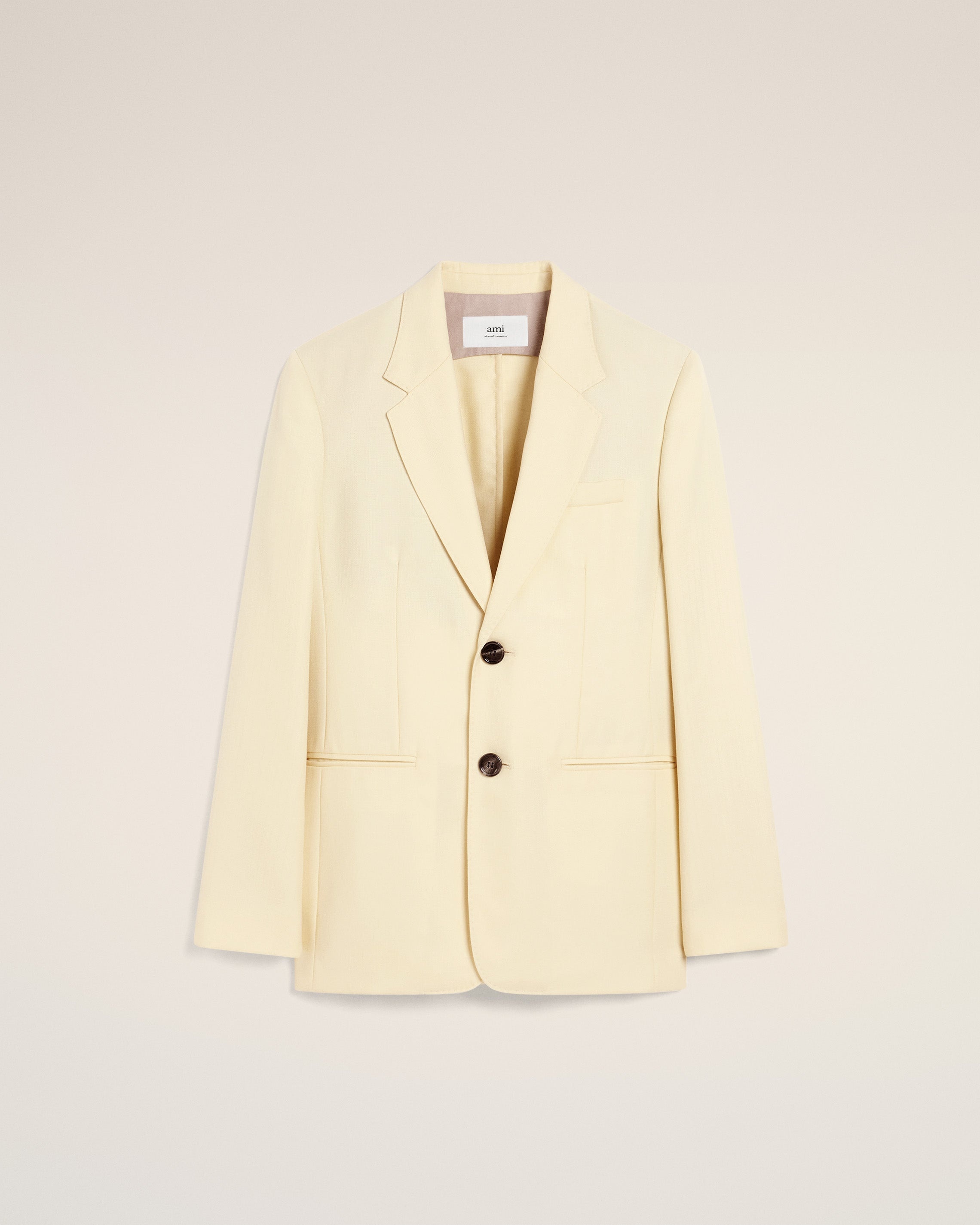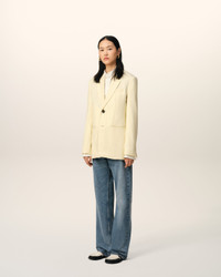 Semi-lined jacket in fluid wool canvas. Straight fit 75 cm center back length (size 36) Half lined Notch collar Two buttons single breasted Two double piped pockets One chest piped pocket Three inside pockets Buttoned bottom sleeves Centre back slit Horn buttons Made in Romania (with love) REF: FBV011.WV0068.726 SIZE & FIT Fits true to size. Take your normal size. Model is 1m79 / 5'10" and is wearing a size 36. COMPOSITION & CARE GUIDE 100% New Wool Do not wash Chlorine prohibited Do not tumble dry Cool iron Dry clean petroleum solvent only on a gentle process