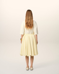 Midi skirt with godets in fluid wool canvas. Middle back length 63 cm (size 36) Invisible back zip Made in Madagascar (with love) REF: FSK227.WV0068.726 SIZE & FIT Fits true to size. Take your normal size. Model is 1m78 / 5'10" and is wearing a size 36. COMPOSITION & CARE GUIDE 100% New Wool Do not wash Chlorine prohibited Do not tumble dry Cool iron Dry clean petroleum solvent only on a gentle process