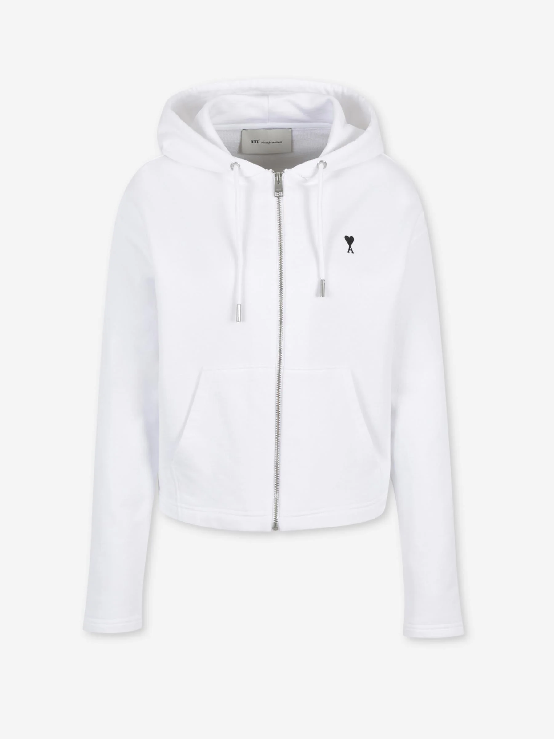 SKU: 715-000236 01 BRAND ID: FSW783.730 sweatshirt By Ami Paris • Regular fit • Made of cotton terry cloth • Hooded collar with drawstrings • Front closure with metal zip • No pockets or zipper • Composition: 100% cotton • Made in: Portugal